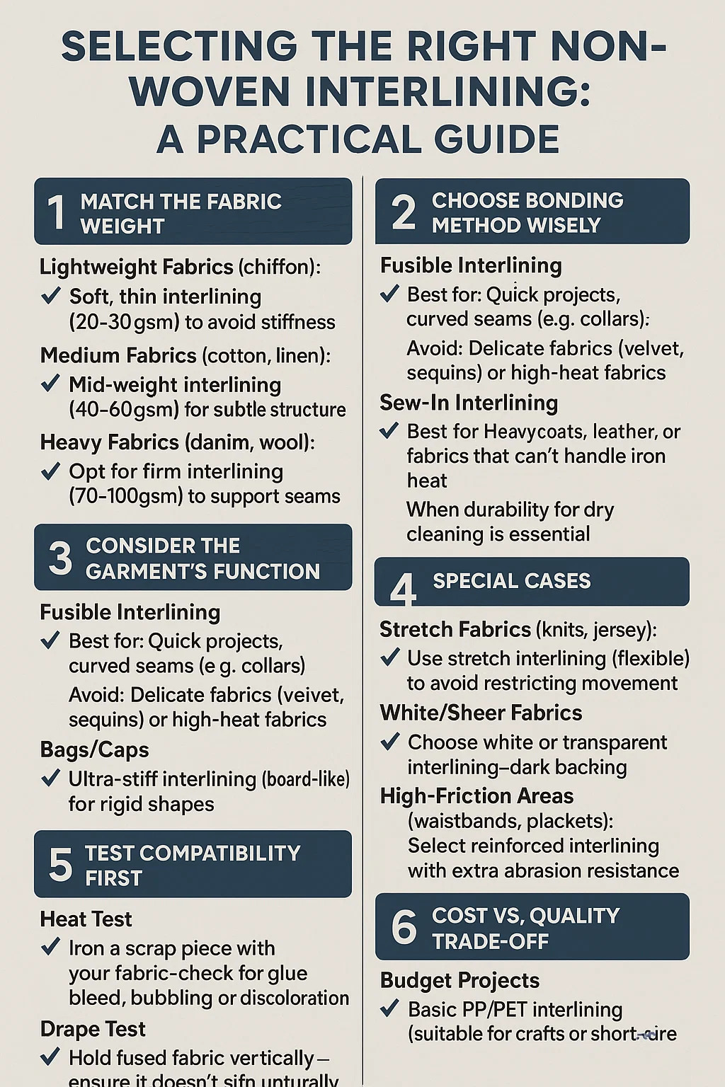 Tissus moyens (coton, lin): Choisissez une interlinaison moyen-poids (40-60gsm) pour une structure subtile.