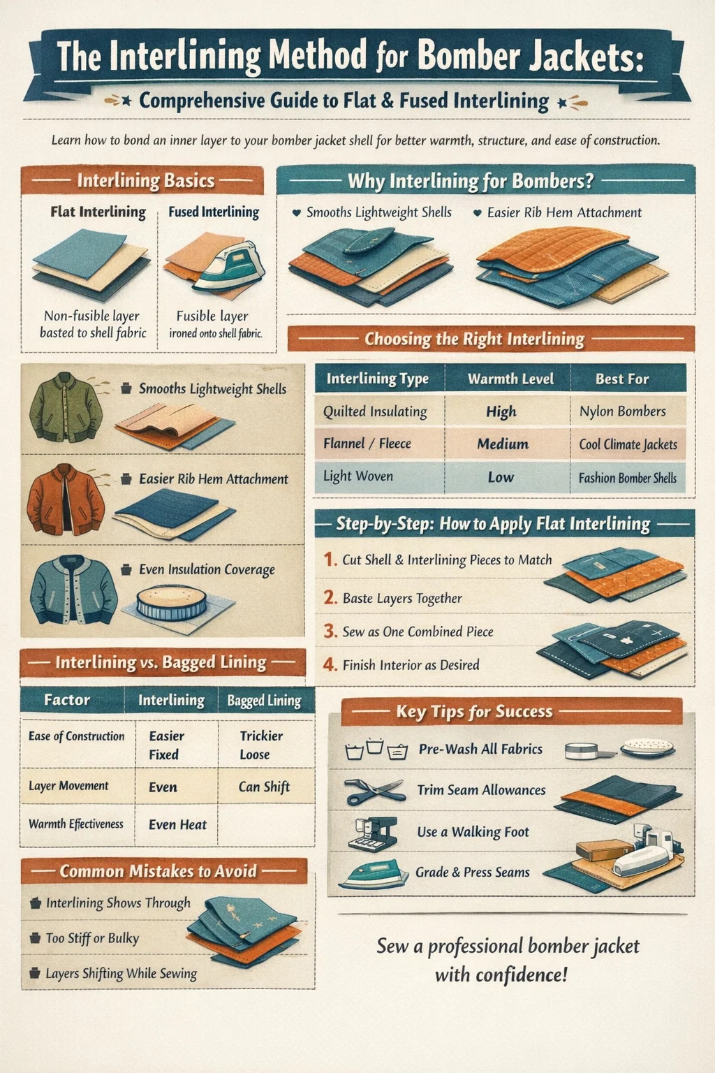 Oui, vous pouvez tout à fait utiliser la méthode de l'entoilage pour doubler un blouson aviateur - et pour de nombreux couturiers, c'est en fait le choix le plus judicieux par rapport à la doublure ample traditionnelle. La méthode d'entoilage lie ou fixe une couche de tissu secondaire directement aux pièces de votre coque extérieure. avant l'assemblage du vêtement, ce qui vous donne plus de contrôle sur la structure, la chaleur et la finition. Que vous travailliez avec une coque en nylon léger ou une veste universitaire en laine épaisse, l'entoilage s'adapte bien à la construction du bomber. Cela dit, ce n'est pas toujours l'approche par défaut, et savoir quand cela fonctionne le mieux – et quel type d'entoilage choisir – fait toute la différence entre une veste qui a l'air professionnelle et une autre qui se fronce, se fronce ou se sent raide.
