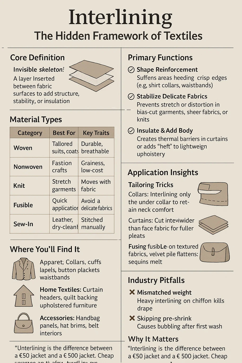 "L'interline est la différence entre une veste de 50 € et une veste de 500 €. Versions bon marché Craque après nettoyage à sec; les types de luxe survivent le tissu extérieur." - Tailor sur mesure, Milan